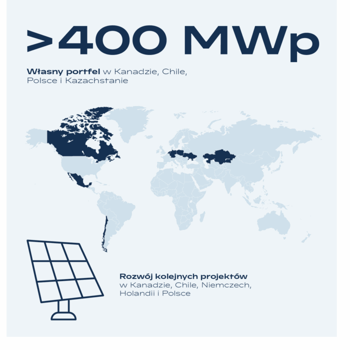 Nasz obecny pipeline projektów obejmuje ponad 3 GWp w lokalizacjach w Kanadzie, Chile, Niemczech, Holandii, Polsce i na Ukrainie. Do 2030 r. postawiliśmy sobie ambitny cel zbudowania portfela deweloperskiego o mocy 10 GWp, a tym samym dalszego rozwoju globalnej ekspansji energii odnawialnej.